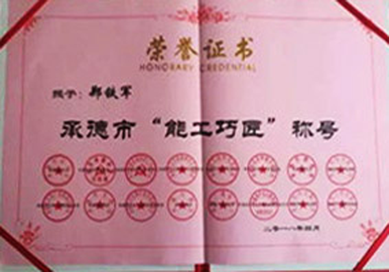 鄭氏砂藝創始人鄭鐵軍,2011年以來,先后獲得 “河北省2010年度民間工藝美術大師”、“河北省外出務工致富能手”、 “首屆河北省五大民俗企業家”、“河北省企業誠信建設優秀工作者” 、首屆燕趙“文化之星”、“2016-承德市十大行業領軍人物”、“美麗河北·優秀文化能人” 、“承德市拔尖人才”、 “承德市能工巧匠”等榮譽稱號。