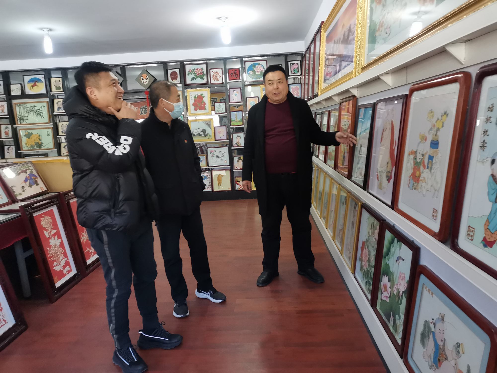 李曉軍主任和趙楠主任在鄭氏砂藝董事長鄭鐵軍的陪同下,來到了鄭氏砂藝非遺文化展廳,參觀了領導關懷展示墻、榮譽墻、鄭氏砂藝金銀絲彩砂畫和旅游伴手禮等,參觀期間,領導詢問了企業近年來運營銷售等情況,聆聽了鄭總講述企業近年來取得的成績和目前遇到的困難,李曉軍主任對企業多年來取得的成績給予肯定,對企業目前面臨的困難表示理解,并指出2023年隨著疫情政策放開和《中國式現代化興隆場景文化強縣工作方案》的出臺等,都是我縣文化產業發展的利好。鄭氏砂藝是極具興隆地區特色的文化產業,要抓住機遇、勇于創新,把企業做大做強,加強企業非遺文化宣傳力度,將鄭氏砂藝(畫)做成具有興隆縣標志性的文化產品,為推動文化興隆建設做出貢獻。