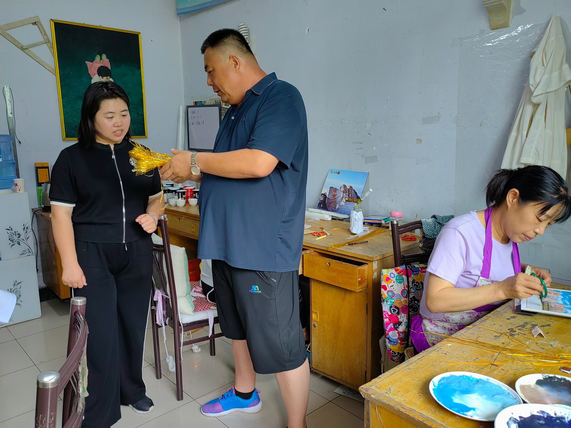 溫偉副部長一行在鄭氏砂藝執行董事長鄭鐵軍的陪同下,參觀了鄭氏砂藝非遺文化展館,在生產車間觀看了鄭氏砂藝(畫)的制作手法和制作原料。期間,鄭鐵軍董事長就鄭氏砂藝的發展歷程、企業文化和企業發展方向等多方面進行了詳細地介紹,溫部長對鄭氏砂藝的發展和獨具特色的砂畫藝術給予了高度評價,并就鄭氏砂藝今后發展方向提出了合理建議,她指出鄭氏砂藝在今后的發展中要充分發揮自身非遺特色,將非遺活動和中國傳統節日相結合,開展相應活動,努力將鄭氏砂藝非遺文化融入廣大社會群眾中去,為建設“文化興隆”作出應有的貢獻。