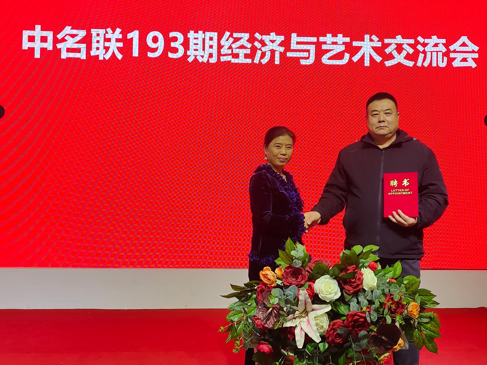 天津均美電子商務(wù)有限公司法人白俊平為鄭鐵軍董事長(zhǎng)頒發(fā)聘書(shū)