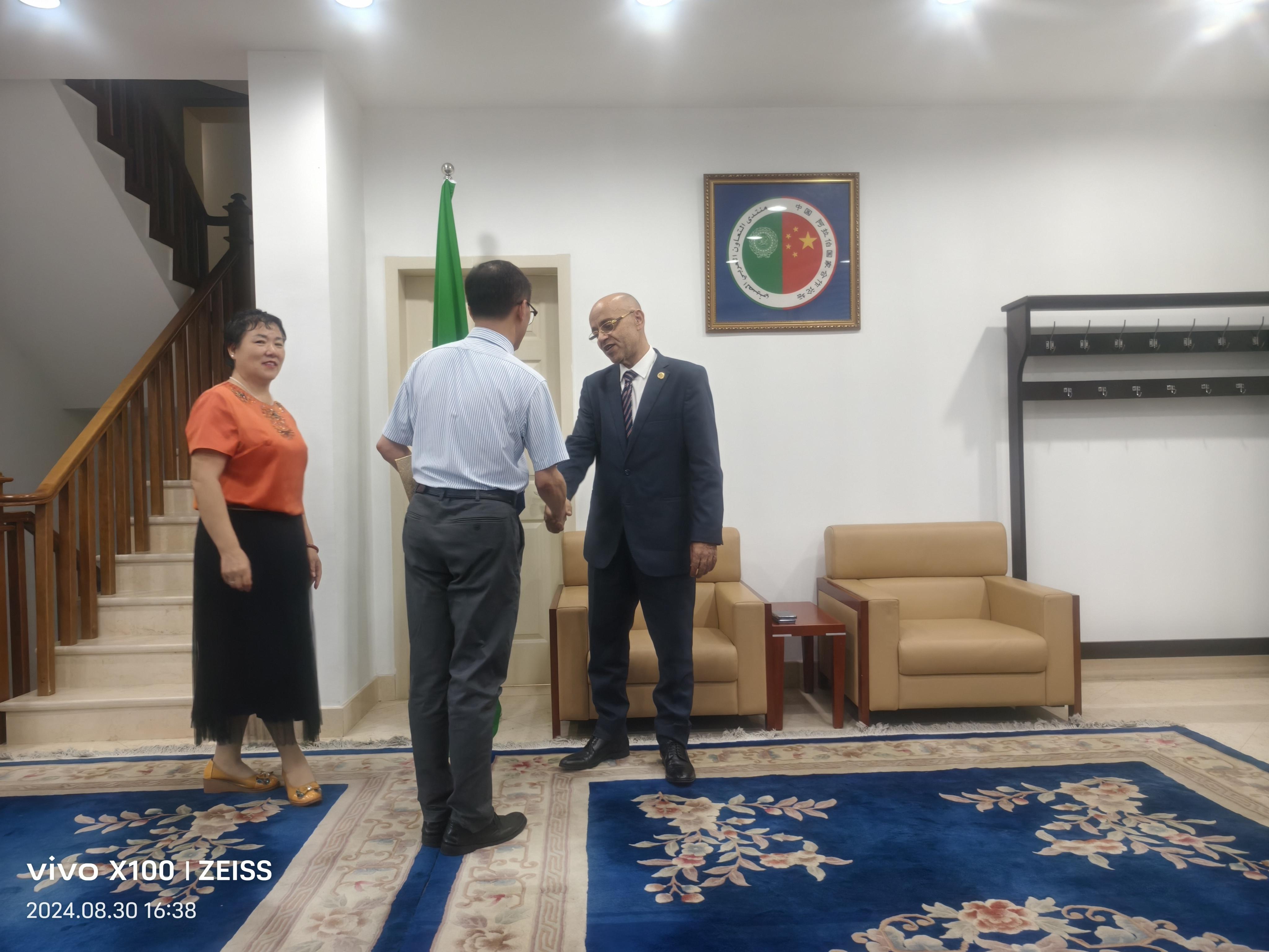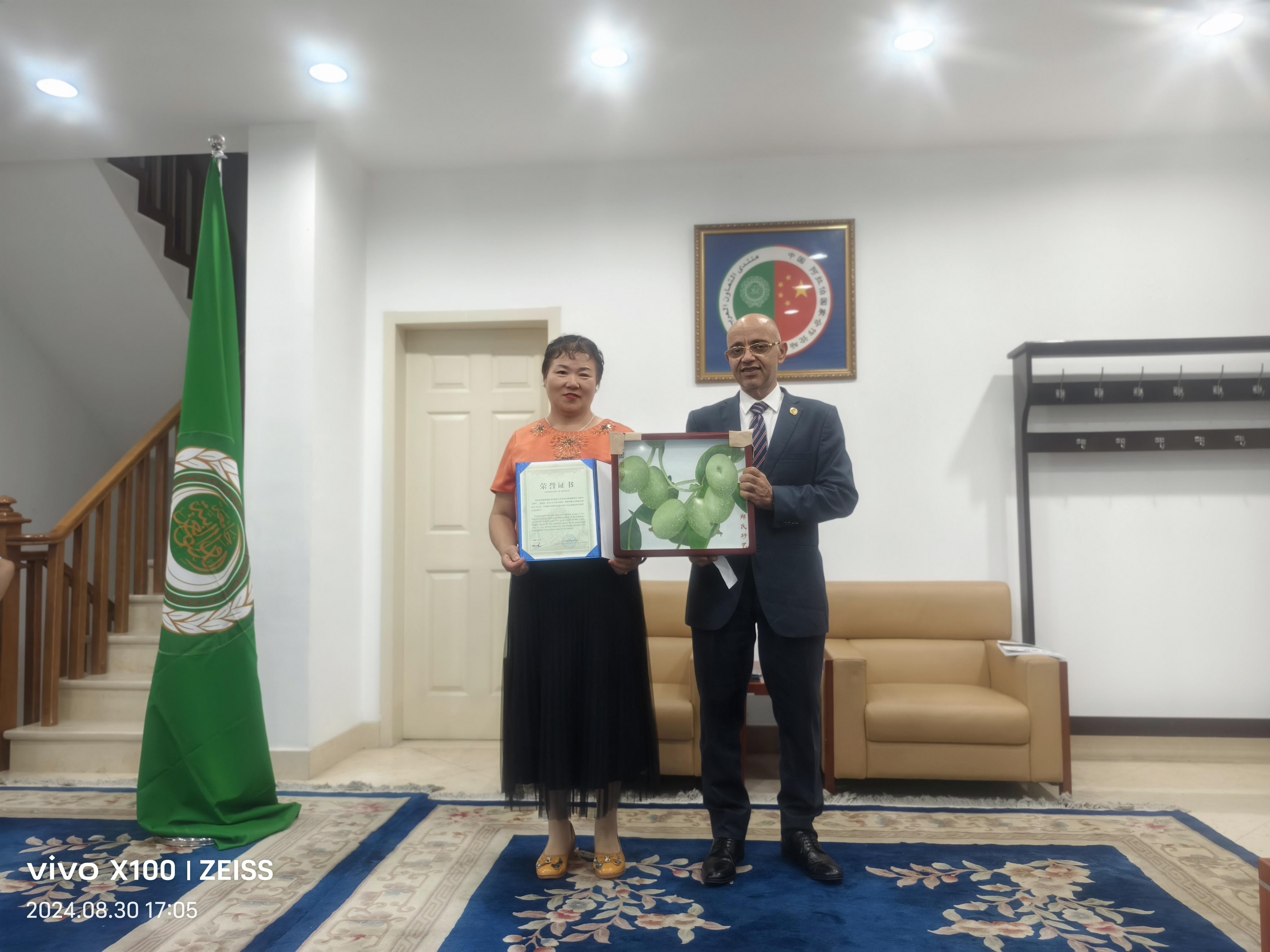 2024年8月30日,應(yīng)阿拉伯駐華大使館邀請,鄭氏砂藝形象代言人劉秀華攜中名聯(lián)簽約國禮藝術(shù)家鄭鐵軍老師的作品到使館進(jìn)行文化交流,大使館現(xiàn)場將鄭鐵軍老師作品《團(tuán)團(tuán)圓圓》作為國禮珍藏。同時為鄭鐵軍老師頒發(fā)了中阿文化交流使者榮譽證書。