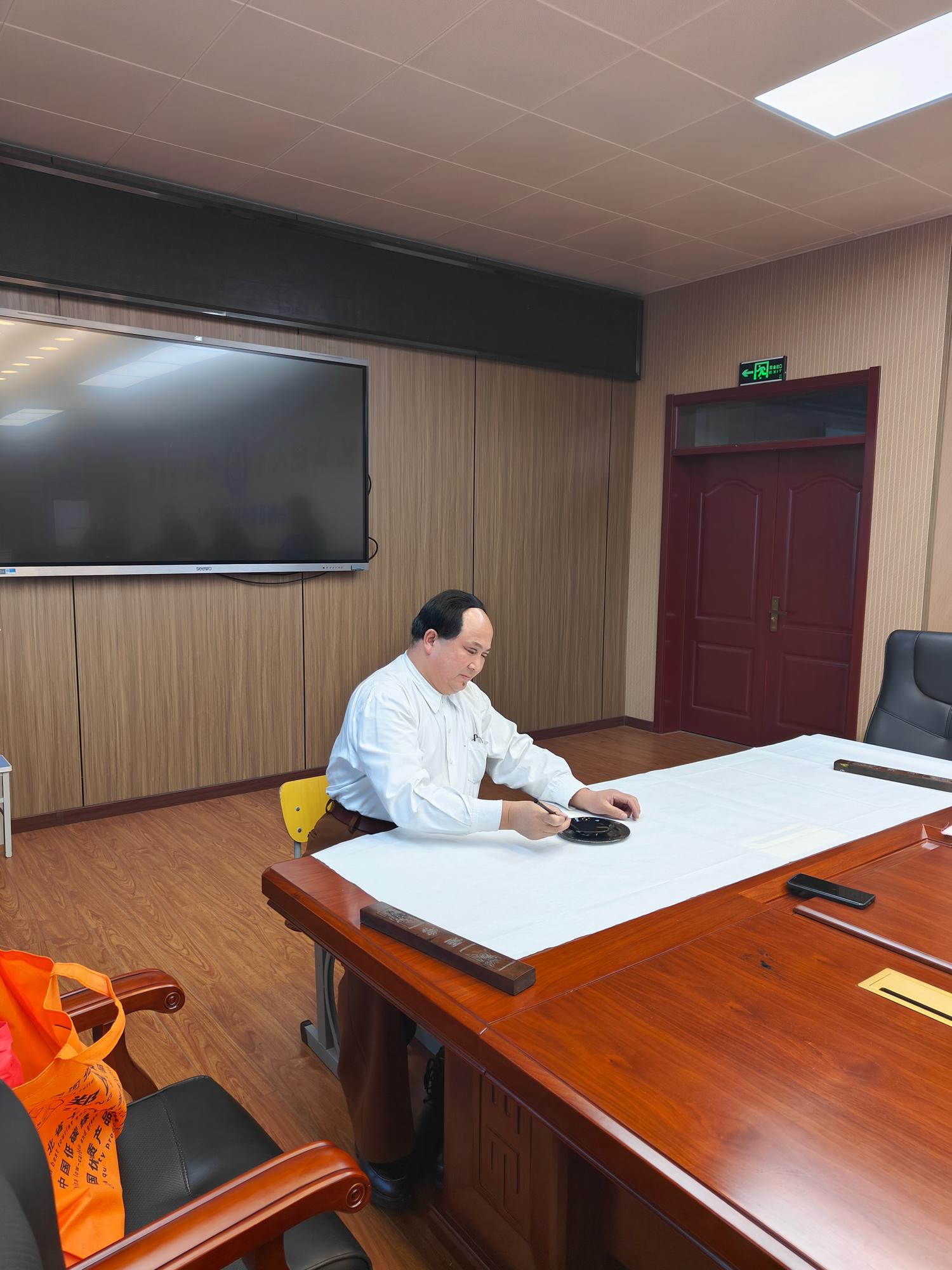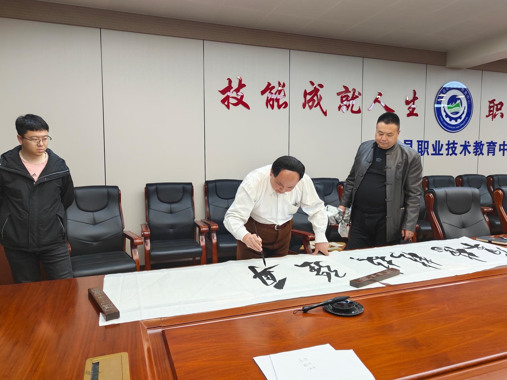隨后,趙士奎老師移步至學校書法室,應校領導的誠摯邀請,現場揮毫,為興隆縣職業教育中心題寫了校訓,即《厚德、精技、強身》。并書寫了詩詞《長征》,此作品不僅向偉人致敬,更激勵著廣大師生傳承和發揚長征精神,為實現中華民族偉大復興的中國夢不懈奮斗。