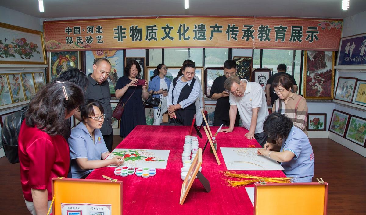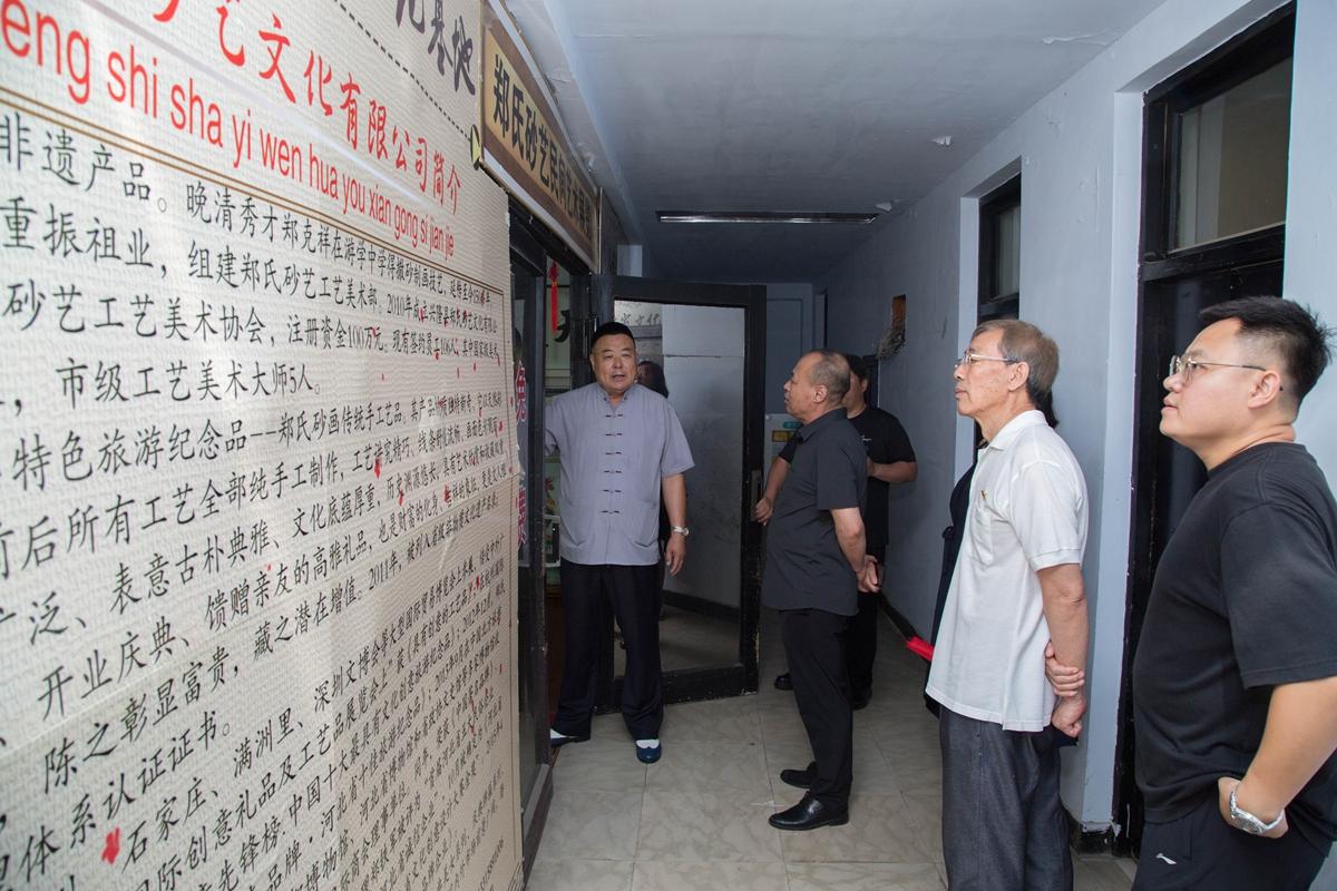在鄭氏砂藝總經理鄭鐵軍的引領下,參觀人員先后參觀了鄭氏砂藝非遺傳承基地和創新研發車間等工作場所,鄭總詳細介紹了公司發展歷程、非遺傳承成果及黨建引領經驗,強調黨紀要求如何融入企業管理黨員參觀了公司展覽館,欣賞了各類砂畫作品,感受非遺魅力。
