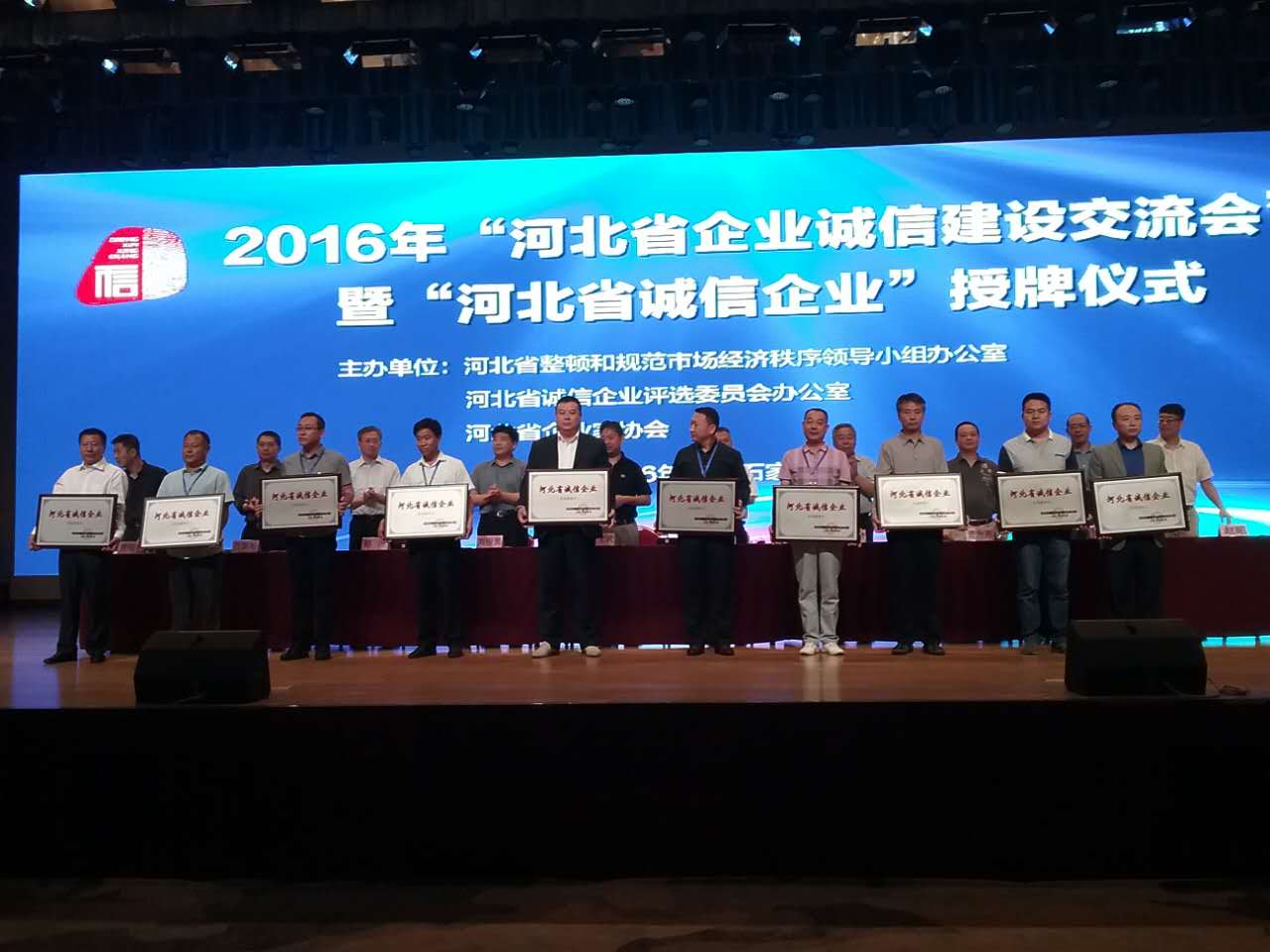 同時公司董事長鄭鐵軍同志也繼2014年后再次被授予“2016年河北省企業誠信建設優秀工作者”榮譽稱號